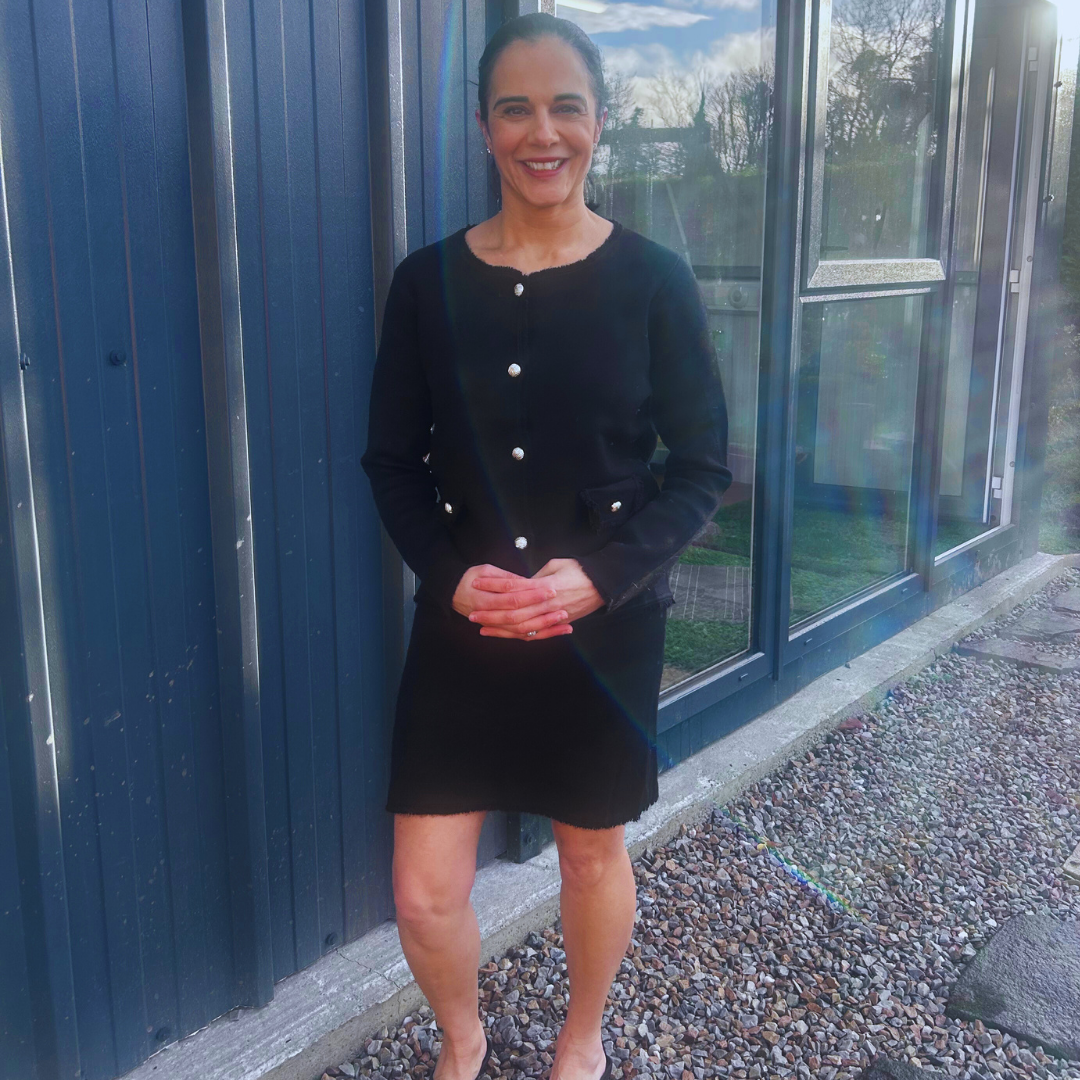 Crafted from a smooth, lightweight knit, the co-ord features a structured cardigan-style top with statement gold-tone buttons and practical front pockets, paired with a coordinating skirt for a streamlined silhouette. The soft-touch fabric and relaxed fit make it perfect for day-to-night styling, whether worn with trainers for a casual look or dressed up with boots or heels.